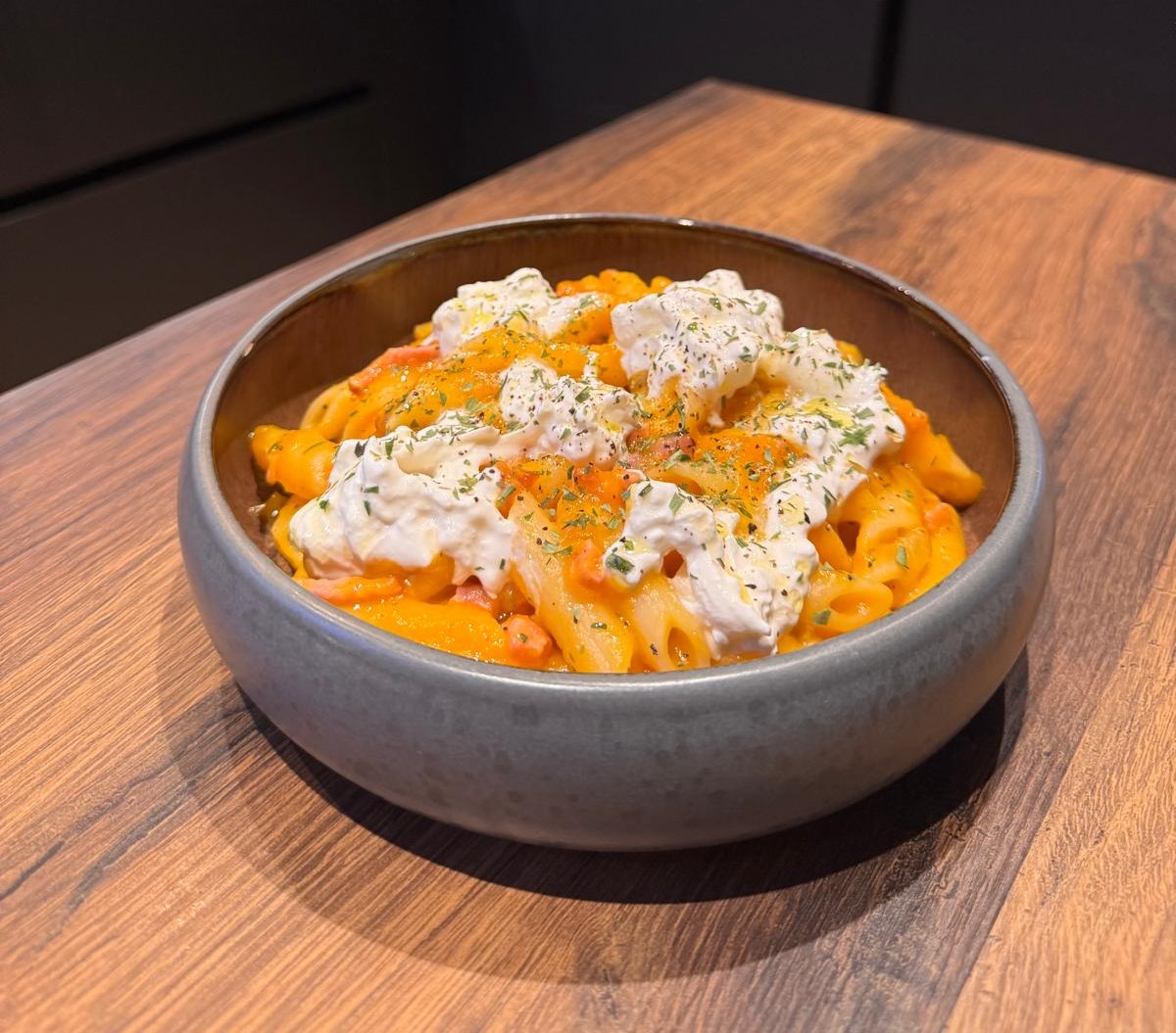 - Ne pas mélanger toute la sauce dans les pâtes initialement car les pâtes ont tendance à absorber la sauce rapidement. Mélanger 2/3 de la préparation dans la casserole et garder 1/3 pour ajouter en dressing pour plus de gourmandise.